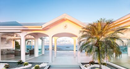 A vision of Grecian-inspired modernism, Villa Byzance is a luminous white sculpture of interconnected pavilions, arched doorways, and full-height glass panels that open to the beautiful horizon. Inside, travertine floors and built-in alcoves evoke a Mediterranean-inspired calm setting. Every room offers ocean-facing sightlines, and the entire layout invites both privacy and openness.